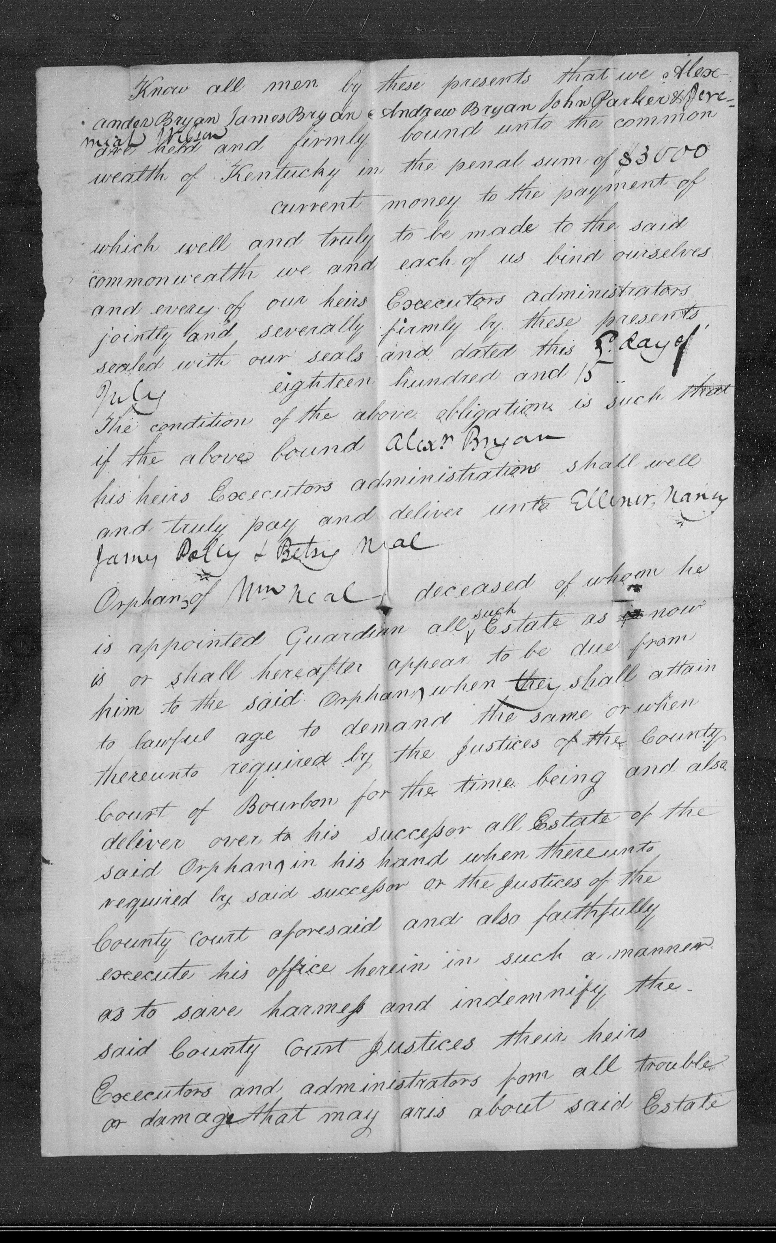 Note that James Crawford Bryan and Andrew Bryan are acting as bondsmen for this guardianship. They are the brothers of Alexander, sons of James and Eleanor Crawford Bryan.
