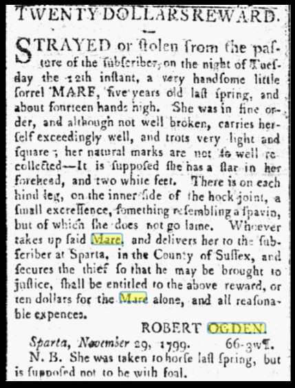 - He has already served his 5 year term at hard labor for stealing Barzilla Osborn’s horse and is asking for a pardon because he’s too old to be working at hard labor (for another five years for the sentence of stealing Benjamin Chamberlain’s horse).